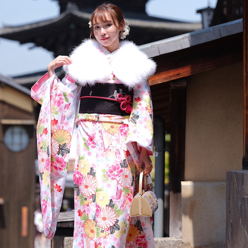 교토의 웅장한 풍경과 풍부한 역사를 체험하려면 기모노(후리소데)를 입고 산책하는 것이 가장 좋은 방법입니다.